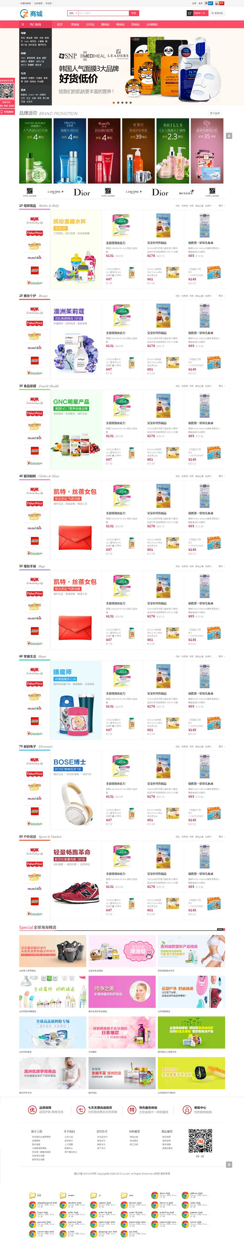 (原创商城)粉色商城模板html整站+用户会员后台,母婴商城模板...