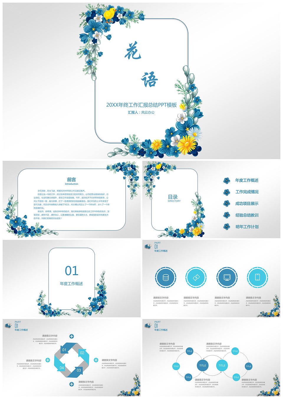 你好二月清新简约花卉计划总结PPT模板