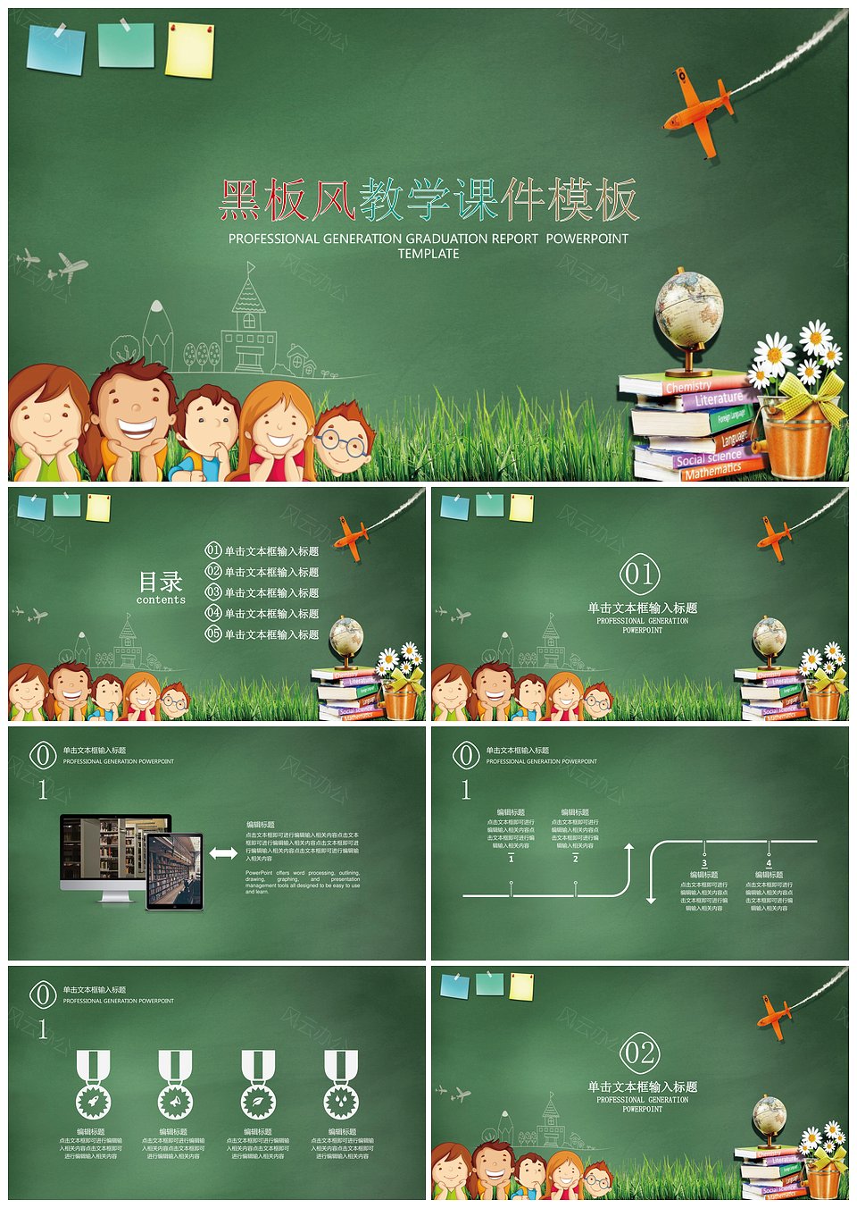 可爱儿童卡通小猪佩奇乔治学前班教育教学通用静态PPT模板