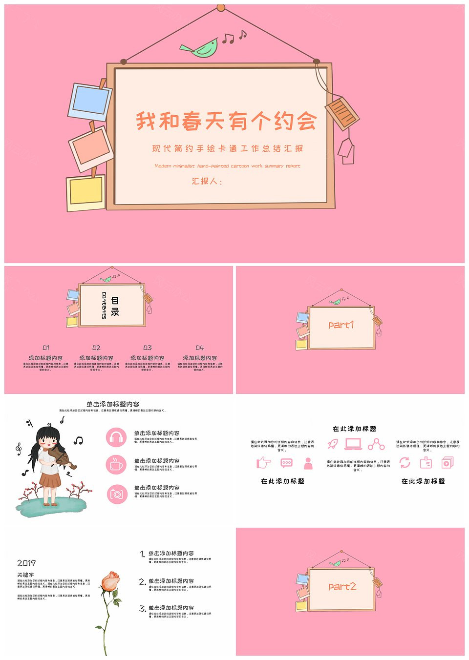 清新手绘大气简约商务汇报PPT模板
