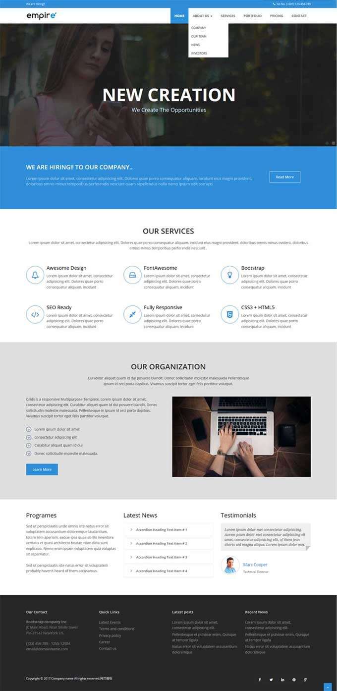 (自适应手机端)pbootcms响应式旅游公司网站模板 蓝色宽屏旅行社网站源码下...