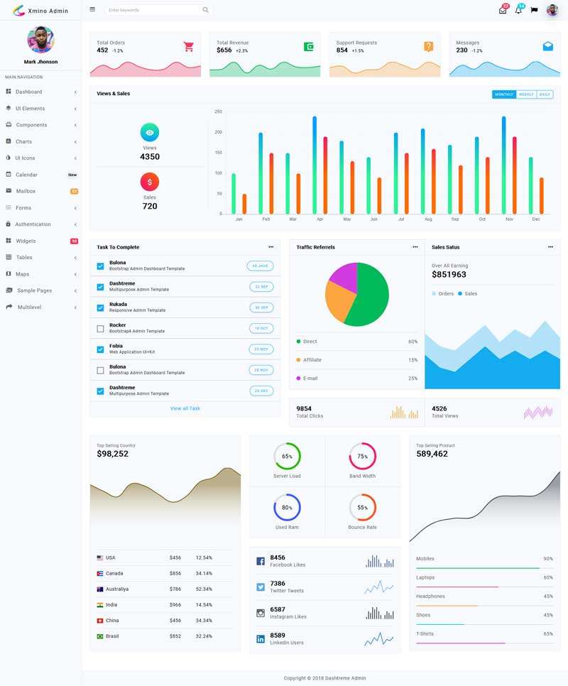 一款响应式的后台管理控制面板,扁平化设计页面模板,基于Bootstrap4框架,HTML5, CSS和JQuery。可以用于任何类型的web后台管理面板,如电子商务网站后台管理系统、crm、cms项目管理系统页面等。...