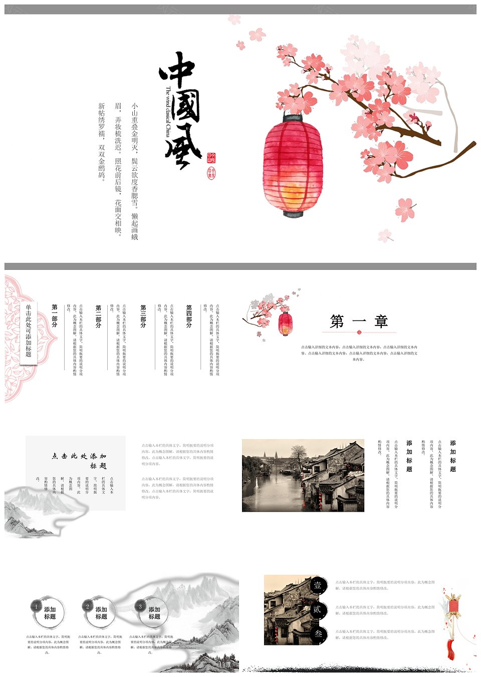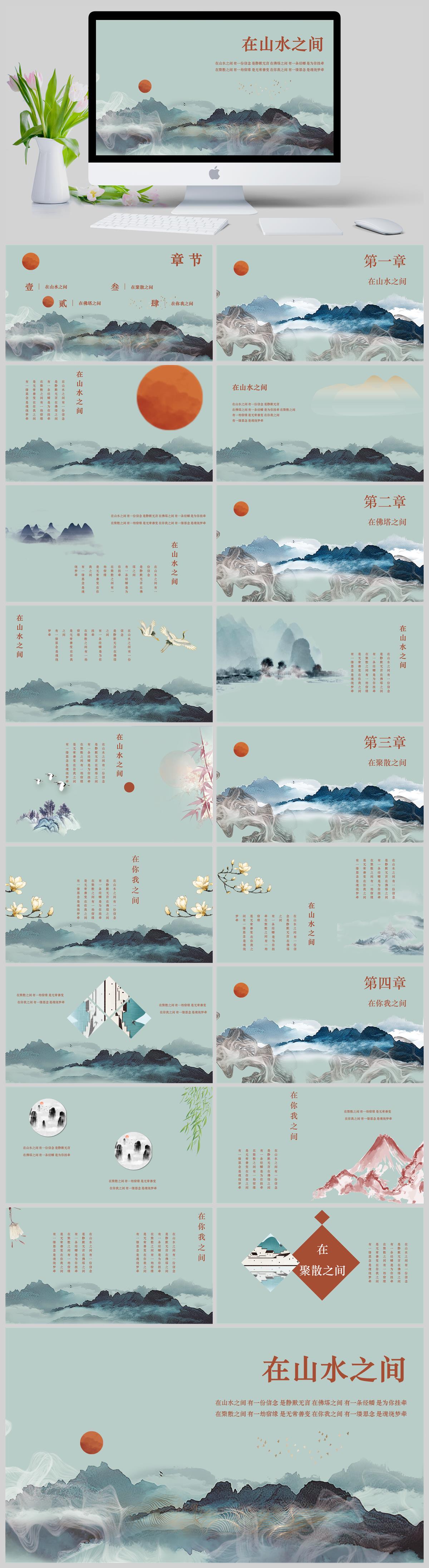 粉色水墨中国风江山如画总结计划国学教育培训通用PPT模板
