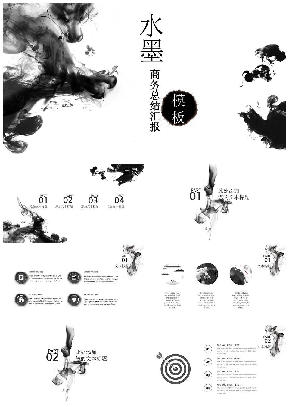 文艺水墨中国风商务计划工作汇报总结教育培训通用PPT模板