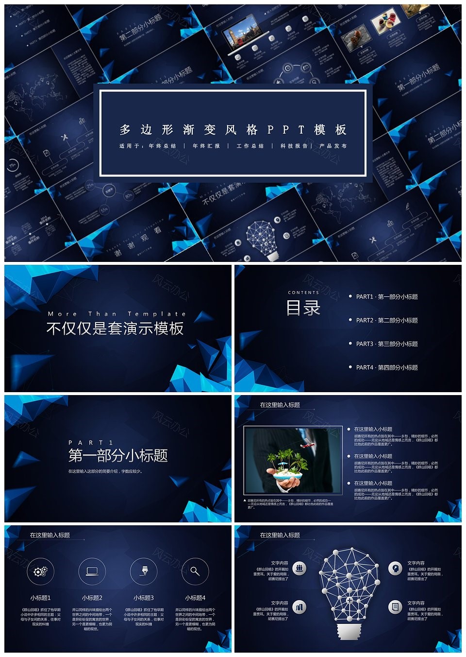 彩色多边形几何简约商务通用PPT模板