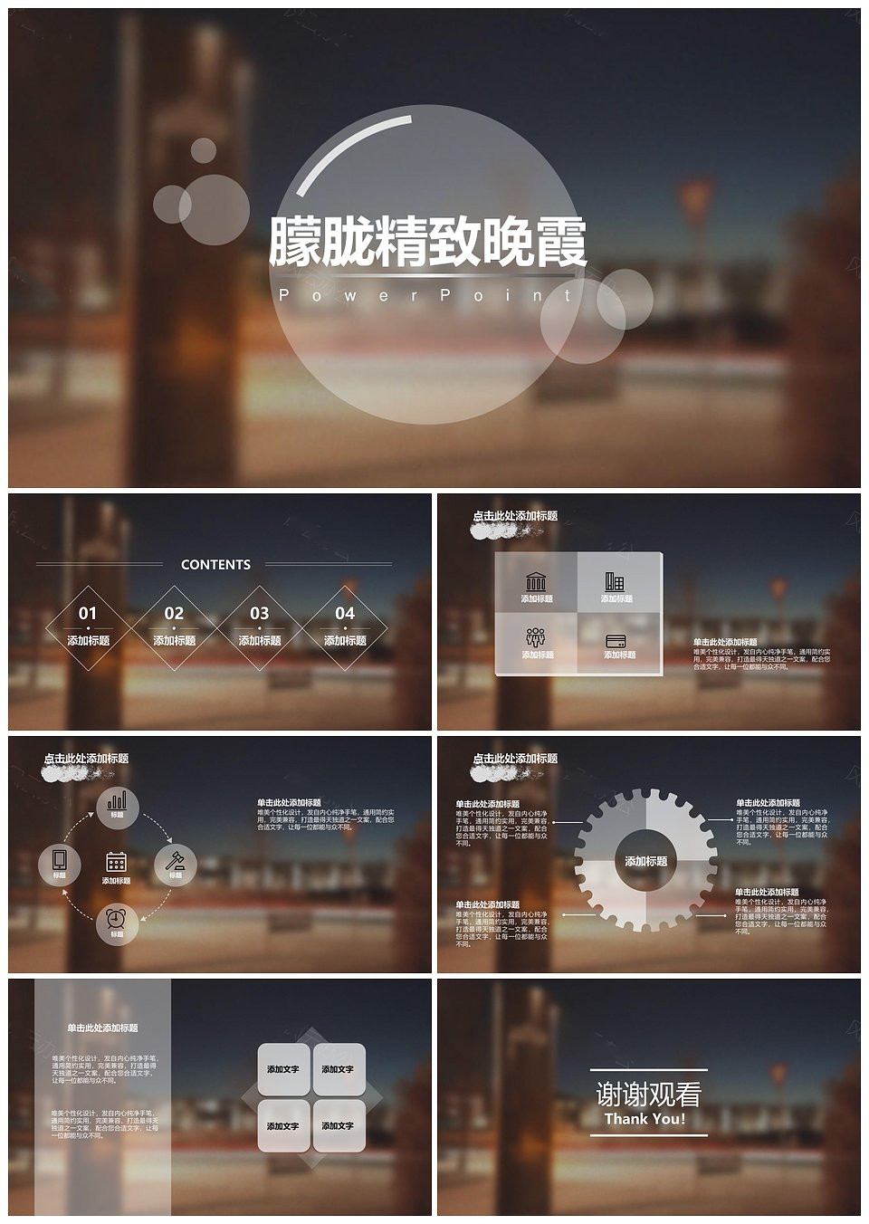 朦胧精致晚霞工作总结年终汇报商务PPT模板