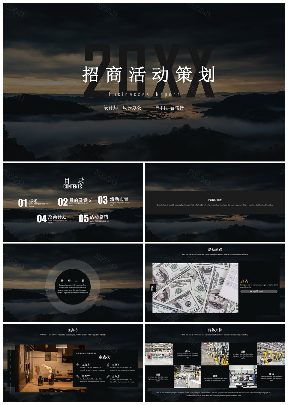黑白趣味喵星人手绘活动策划营销管理商务PPT通用模板