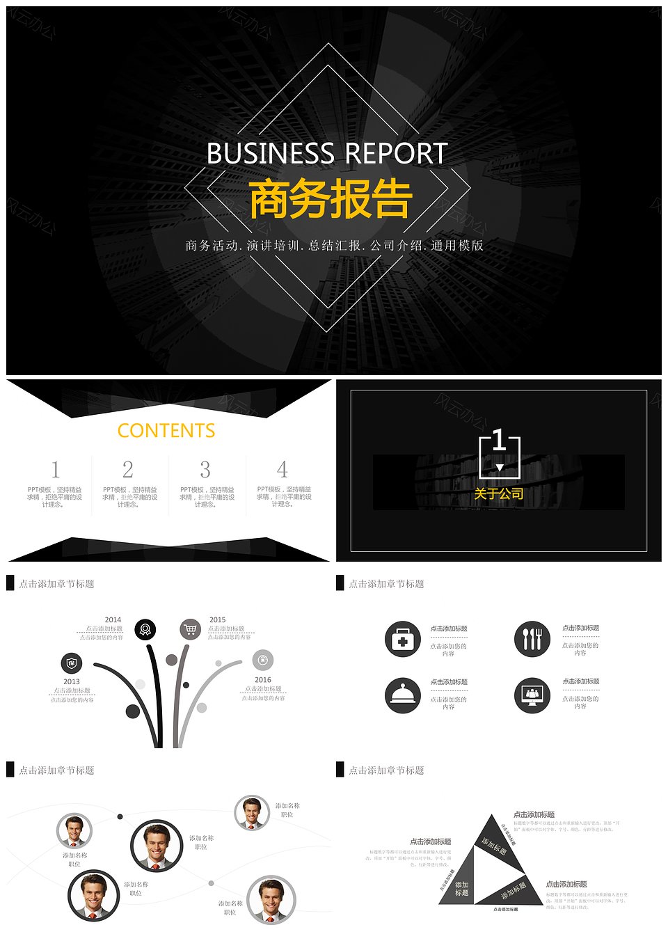 欧美风酷黑时尚商务通用PPT模板
