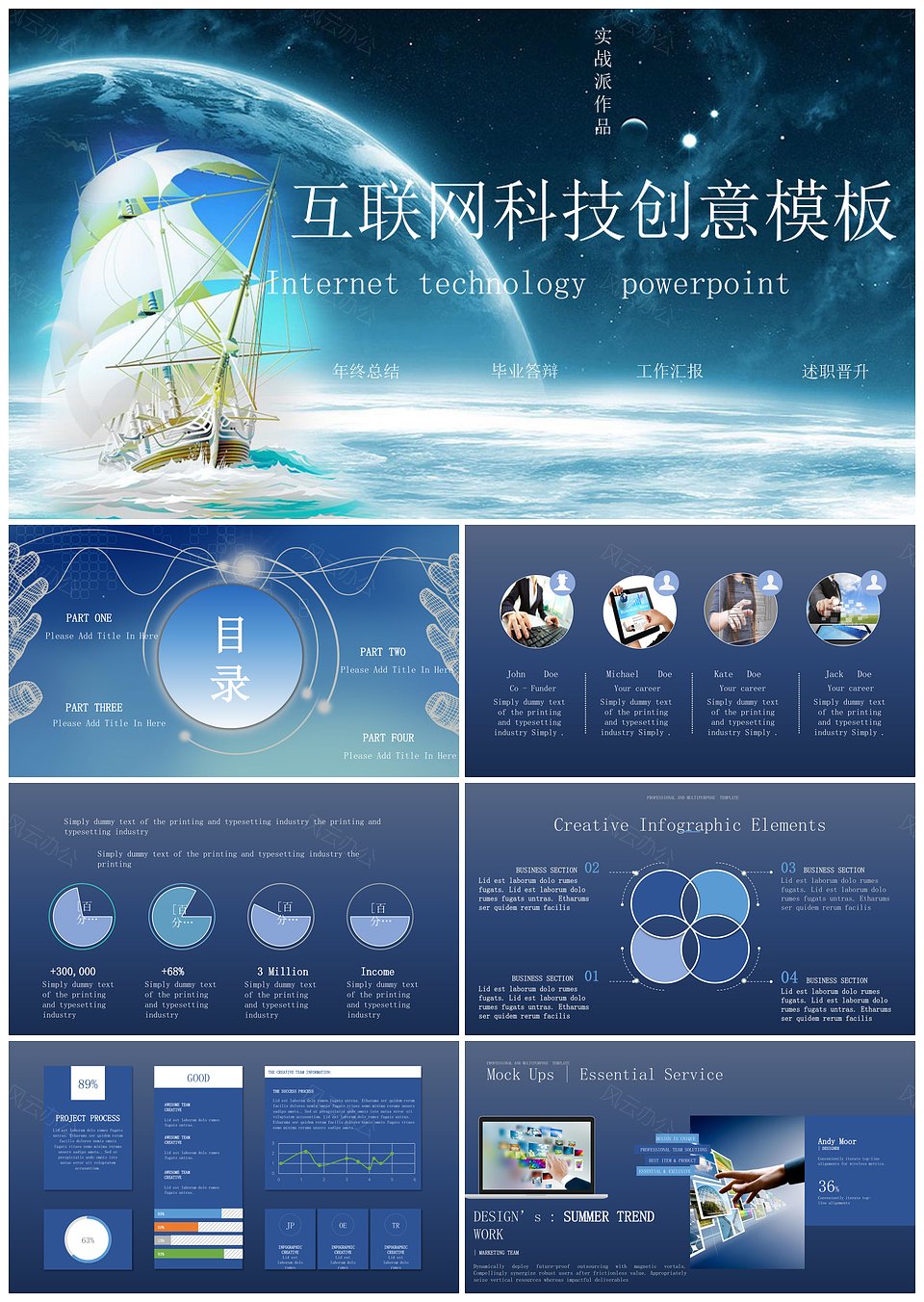 实战派演示炫彩科幻星空大气创意工作汇报PPT模板
