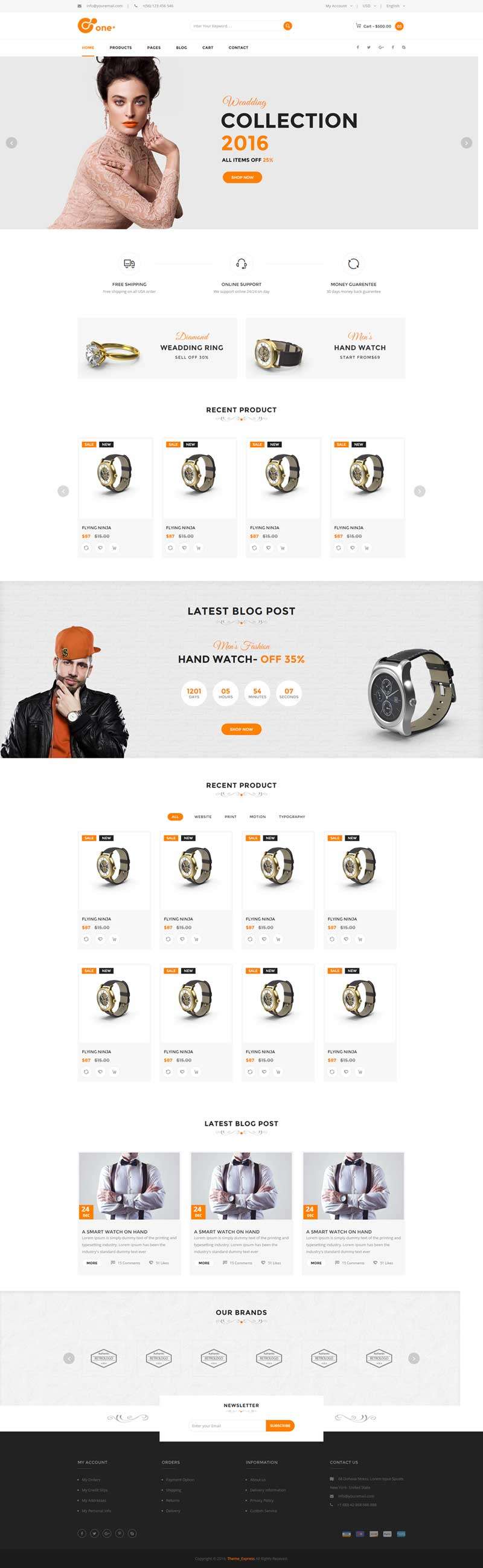 简洁橙色的响应式设计的电子商务商城模板,适合销售配饰、手表,时尚或任何其他的在线手表品牌购物网站。它是用最新Bootstrap构建框架和HTML5和CSS3。包括所有必要的页面。所以你可以很容易从我们的模板准备你的网站。...