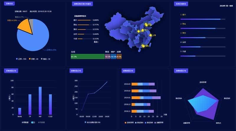 响应式的机械设备监测大数据可视化管理平台页面HTML模板。页面包括图标,图表,数据等。...