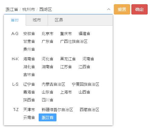 jQuery手机端省市区城市联动选择代码