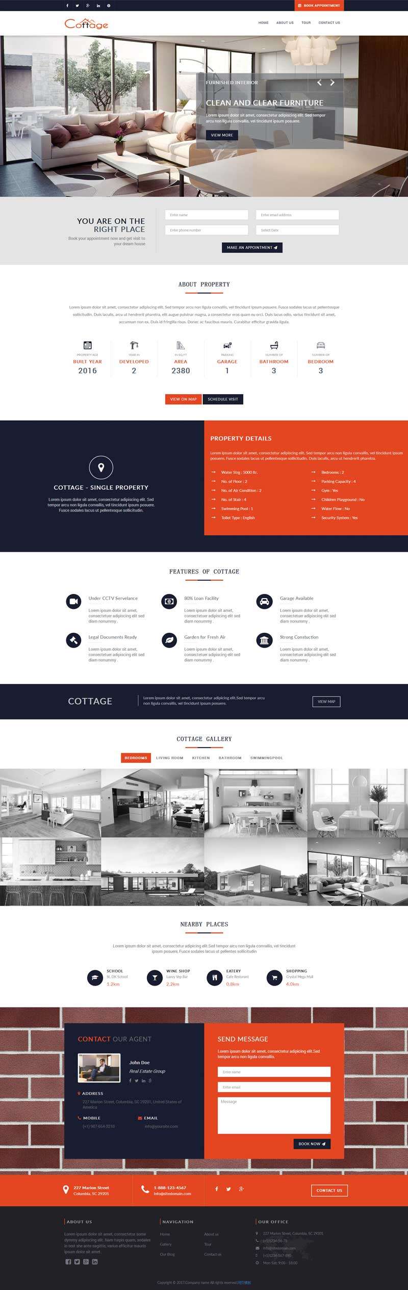 Bootstrap前端框架实现的房产中介网站模板。适用于房地产公司或个人销售房产,销售你的别墅、土地、公寓,房子。响应现代和明确的设计布局。...