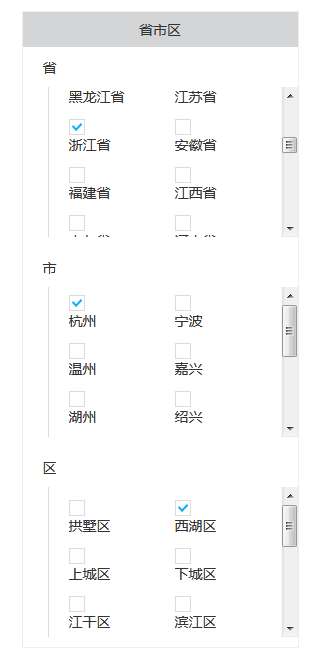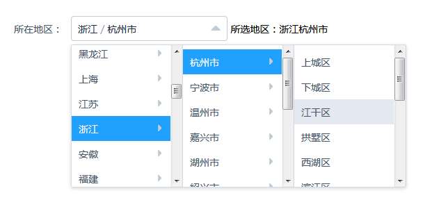 jQuery手机端省市区三级联动代码