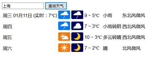 js获取百度API天气数据,查询全国城市地区天气未来7天天气预报页面模板。适合毕业设计作业。...