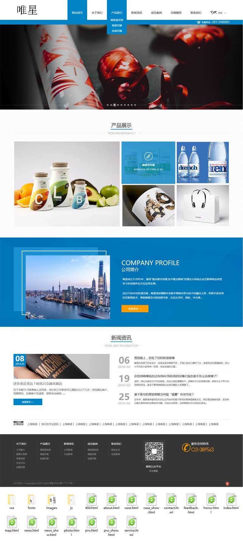 蓝色大气的印刷包装主题类型网站 响应式网站 蓝色主色调网站模板...