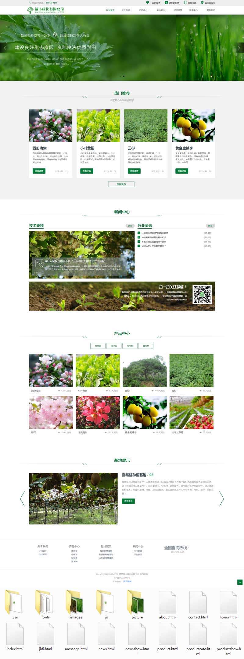 html5响应式宽屏的绿化植物蔬菜水果种植公司网站模板,绿色大气的水果种植网站响应式模板。主要页面有:关于我们、公司简介、在线留言、产品中心、基地展示、资质荣誉、新闻中心、联系我们等总共11个页面。...