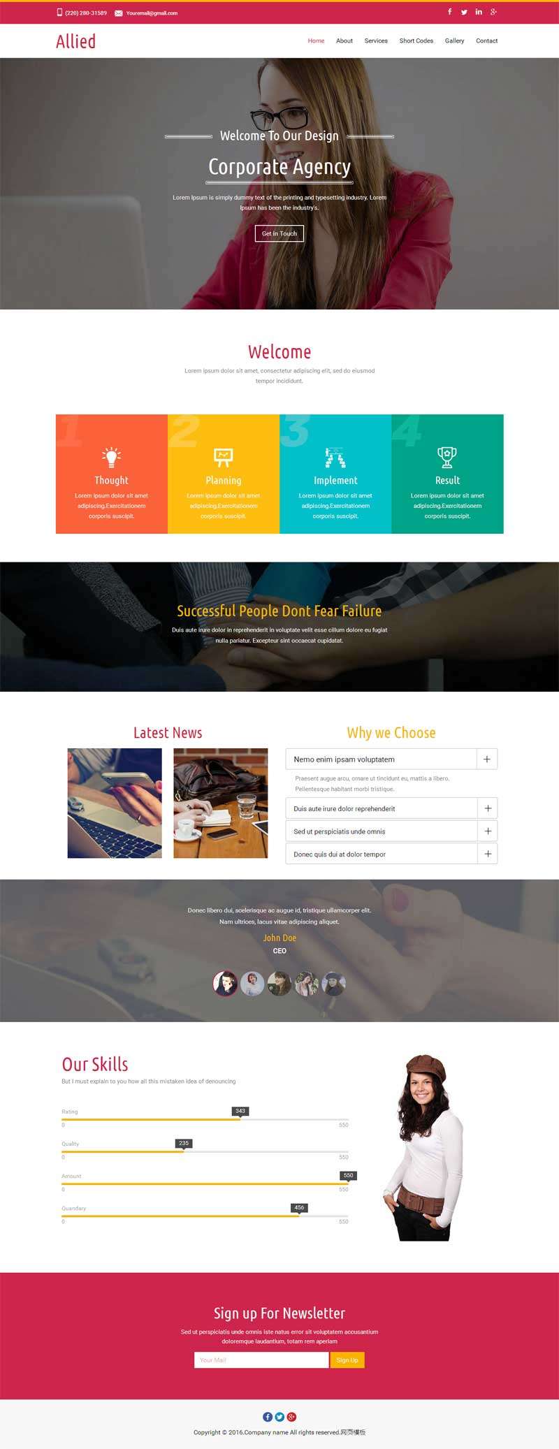 一款经典的扁平风格html5响应式模版Mocha,蓝色插画艺术风。...