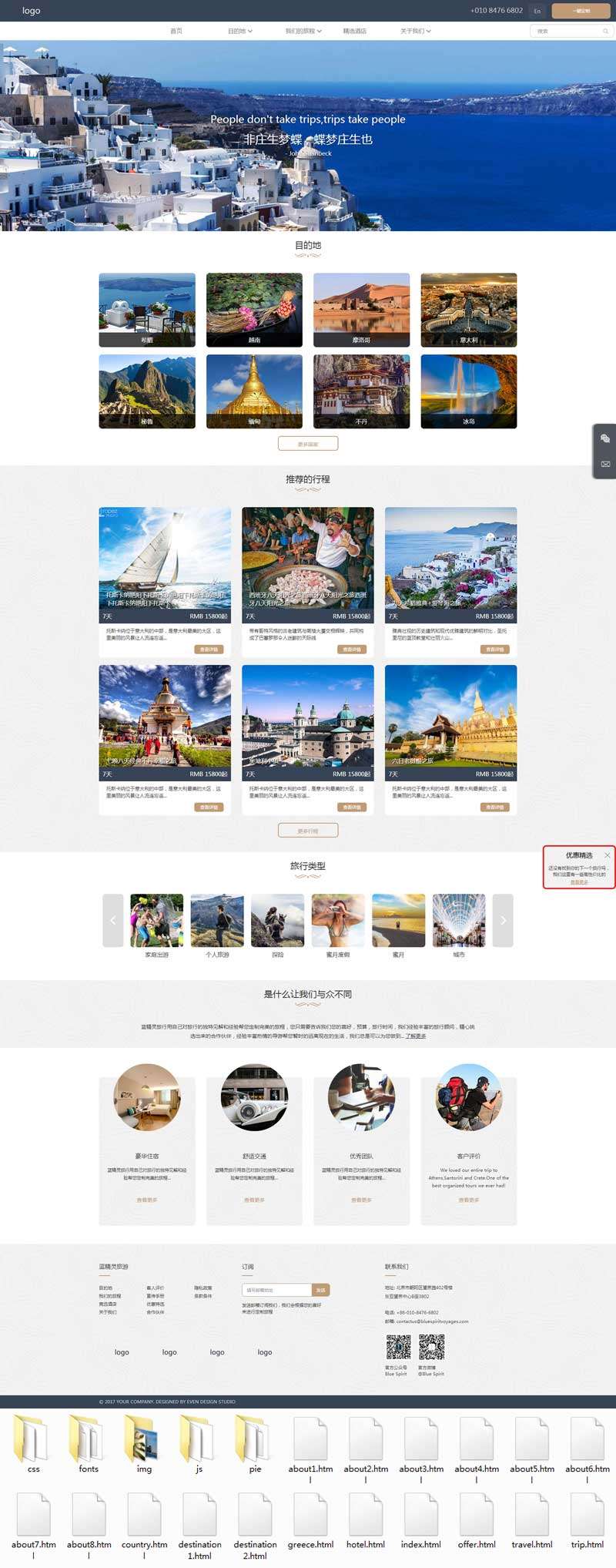 (自适应手机端)pbootcms响应式旅游公司网站模板 蓝色宽屏旅行社网站源码下载PbootCMS内核开发的网站模板,该模板适用于旅游公司网站、旅行社网站等企业,当然其他行业也可以做,只需要把文字图片换成其他行业的即可;自适应,同一个后台,数据即时同步,简单适用!附带测试数据!...