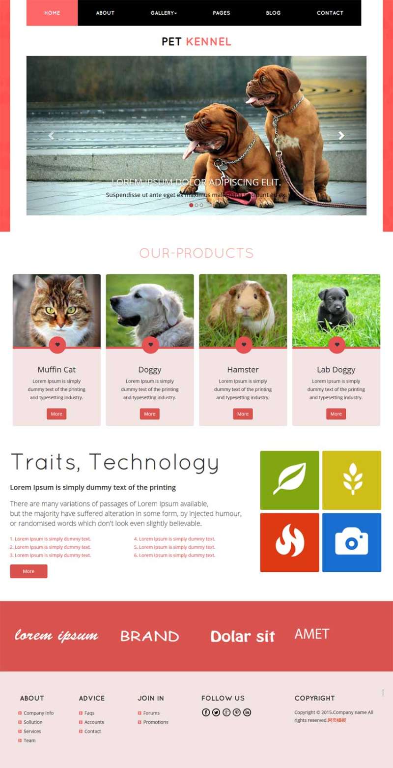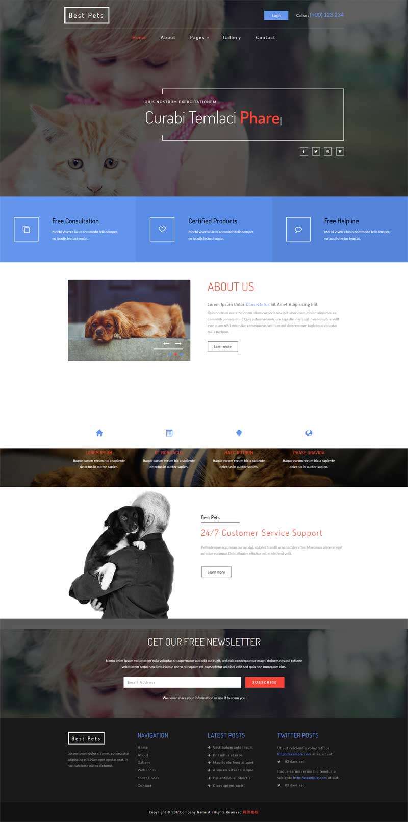 宠文类型的响应式网站模板,宠物培训网站html5模板下载。...