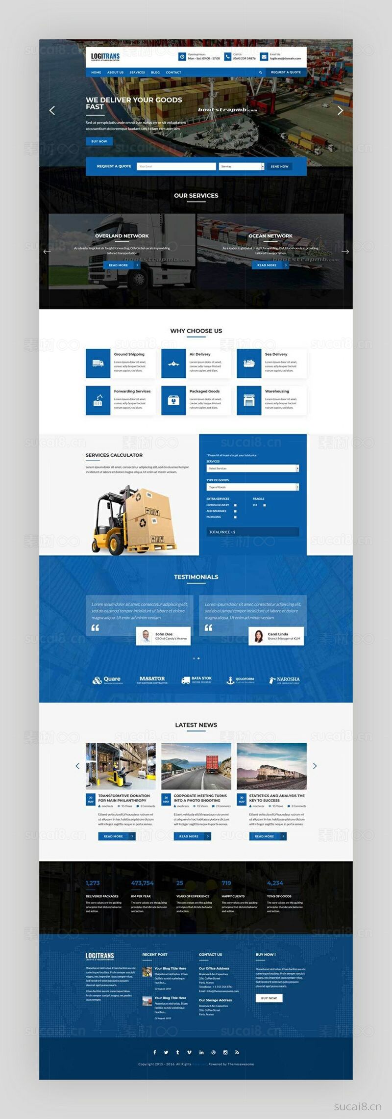 蓝色大气物流货运公司网站整站网页模板。...