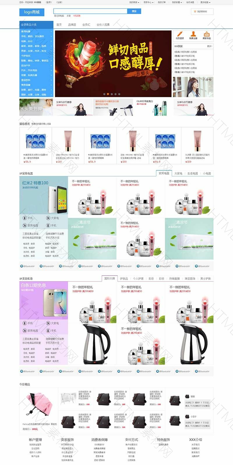 蓝色大气的运动品牌商城模板html源码蓝色很有个性的国外商城模板,排版精致有创意,值得下载。...