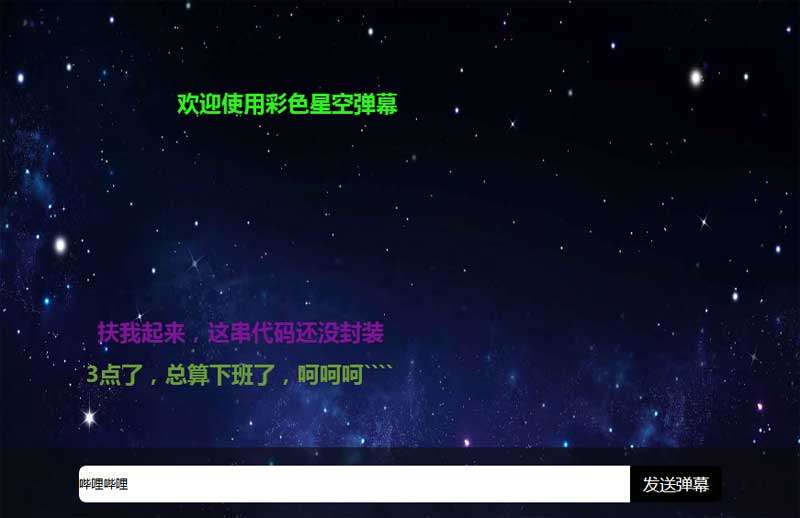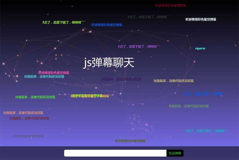 原生js基于canvas绘制全屏的星空背景,制作底部弹幕输入框,输入文字发送弹幕,全屏酷炫的星空背景文字弹幕评论效果代码。...