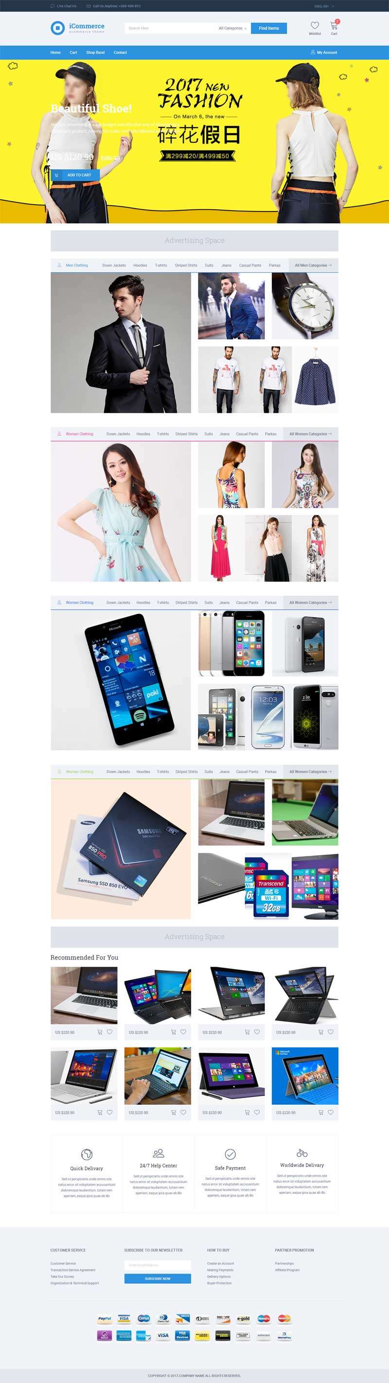 (自适应手机端)pbootcms响应式刷卡机POS机网站模板 无线支付设备网站源...