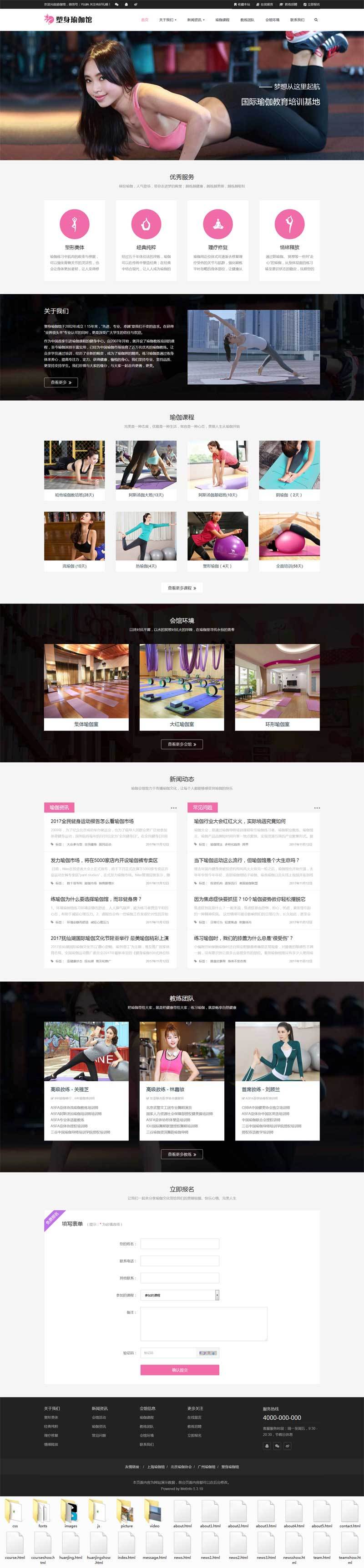 粉色大气的塑身瑜伽网站模板,健身房网站响应式模板。主要页面有:关于我们、塑形美体、经典纯粹、理疗修复、情绪释放、职业老师、新闻资讯、会馆活动、瑜伽资讯、常见问题、瑜伽课程、教练团队、会馆环境、联系我们、在线留言等总共20个页面模板html下载...