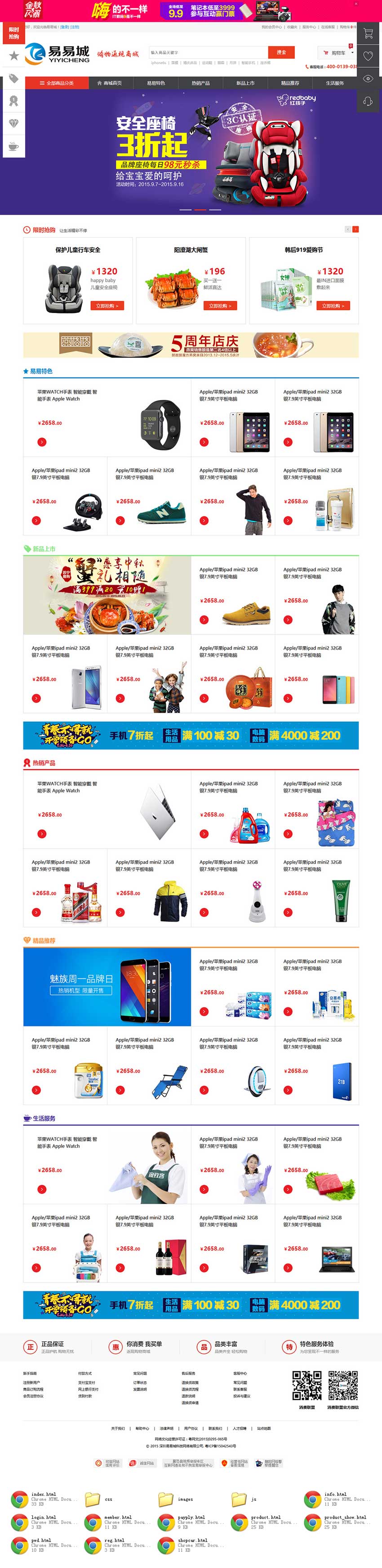 多元化商城模板下载,含两个首页(简洁首页和详细首页)注册登录 产品类表 详细页 团购页 购物车 用户中心 帮助中心等模板...