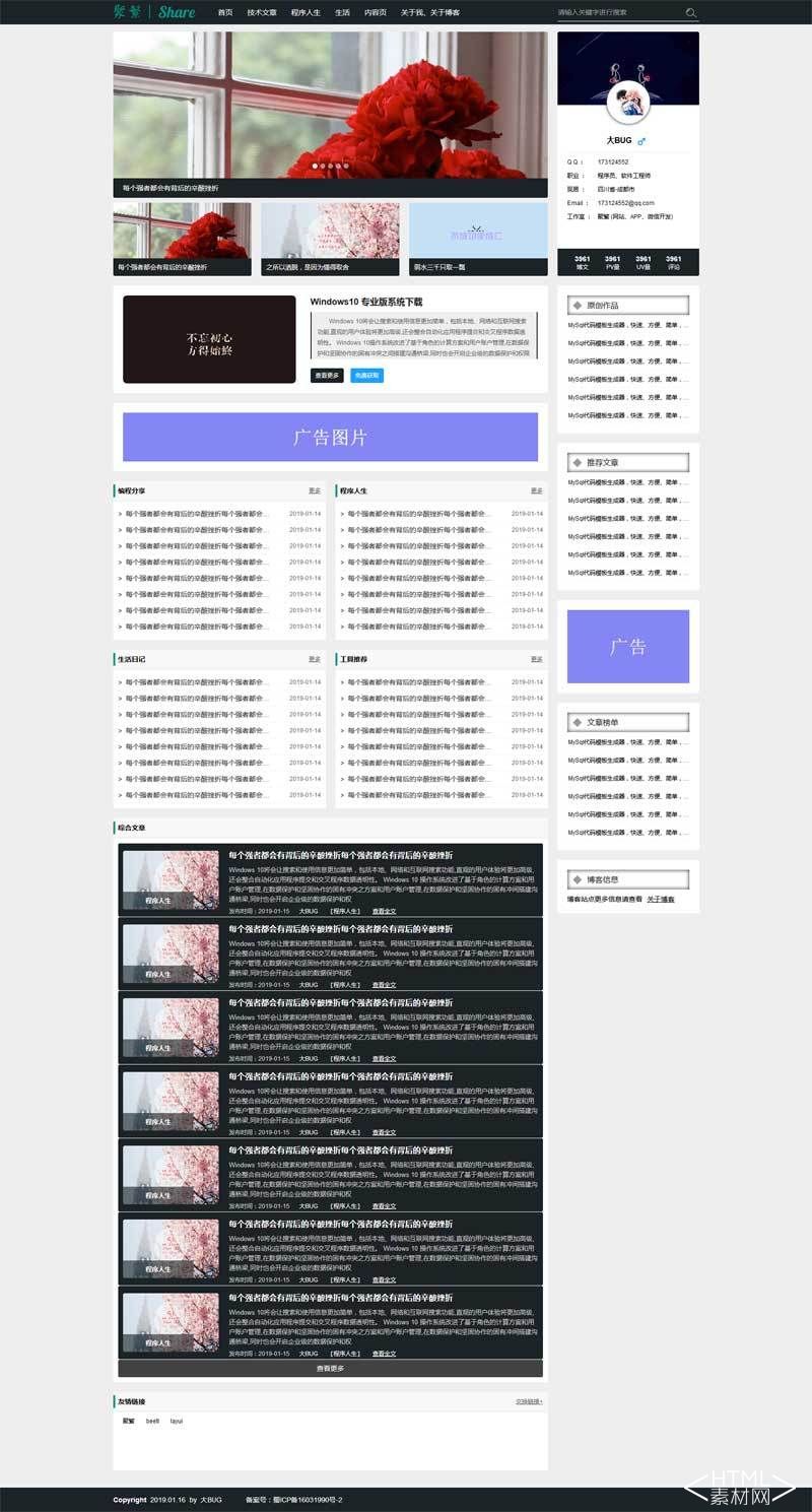 基于html5+css3一套超炫的个人博客,,整站...