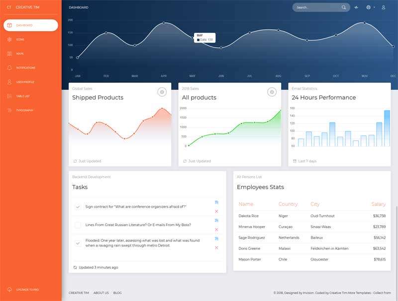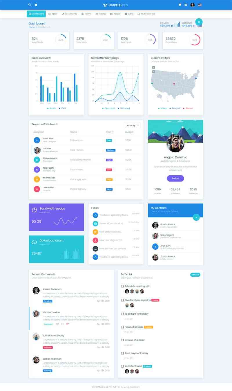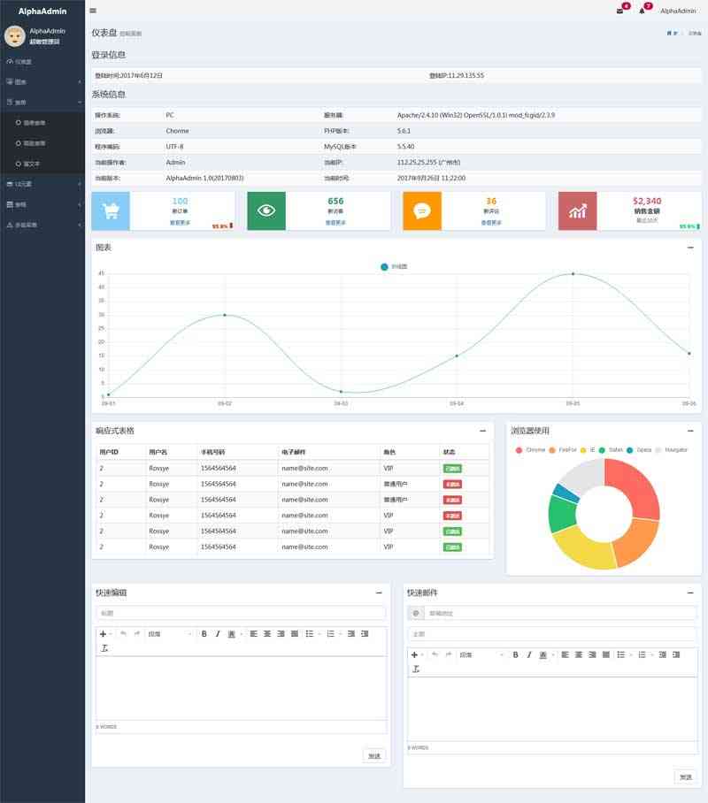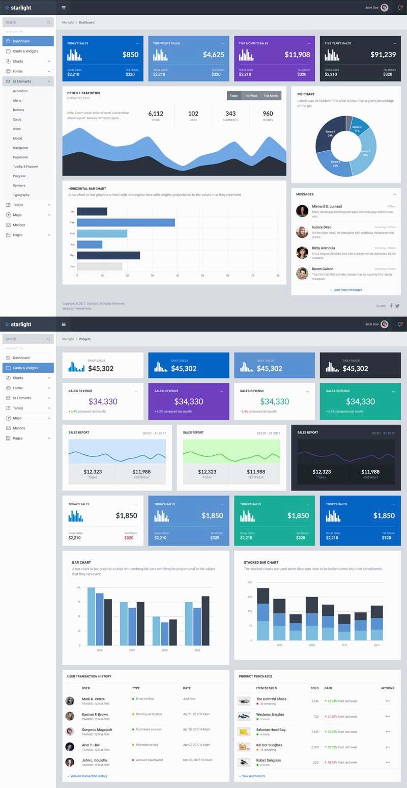 Starlight数据统计后台管理模板是一个基于最新的Bootstrap4管理模板有许多功能,插件和定制元素,可以用作您的后台界面ui模板。集成图表(曲线图、柱状图、饼图、实时图表),表单元素(自定义形式,验证、向导、所见即所得编辑器)等。适用于手机端后台页面模板下...