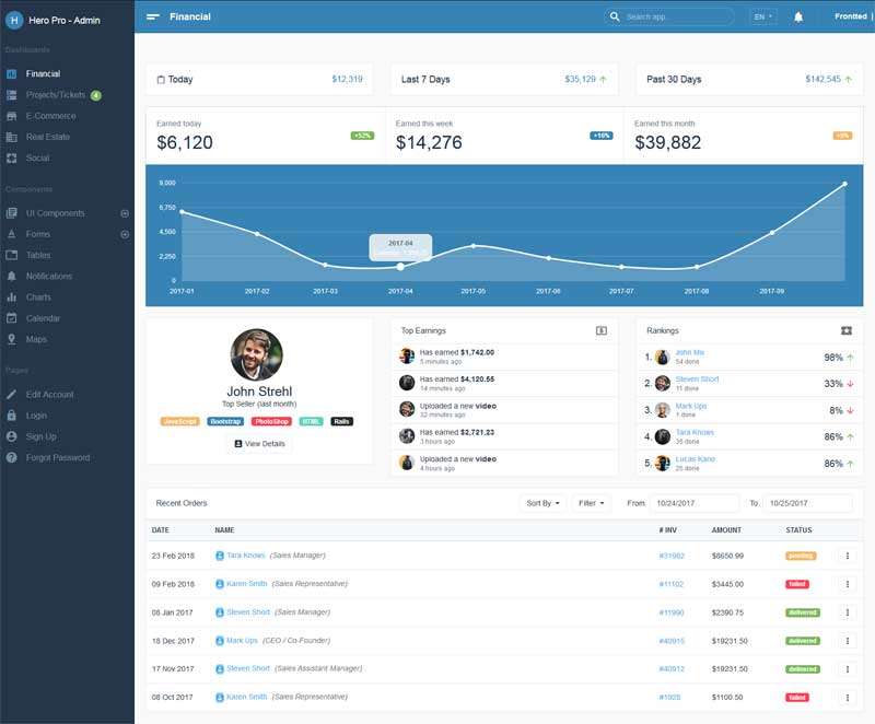 HeroPRO是一个高级业务管理主题前高级设计人员和开发人员,建立在互联网上使用最新的Bootstrap4框架和最佳实践与独特的设计和编码的页面和UI元素。这个Bootstrap4管理模板可用于任何SASS项目如学校/大学,商店/零售、金融/报告、社会媒体、房地产、项目管理或...
