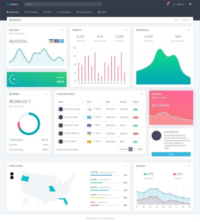 Greeva是充分响应式的Bootstrap4管理模板,使用html5,css3,jQuery等技术。它可以用来构建任何web应用程序包括自定义管理面板中,项目管理系统、crm、cms等各种各样的布局选项和插件收集可重用的部件,组件,等等元素允许您构建一个独特的管理系统。它适用于所有...