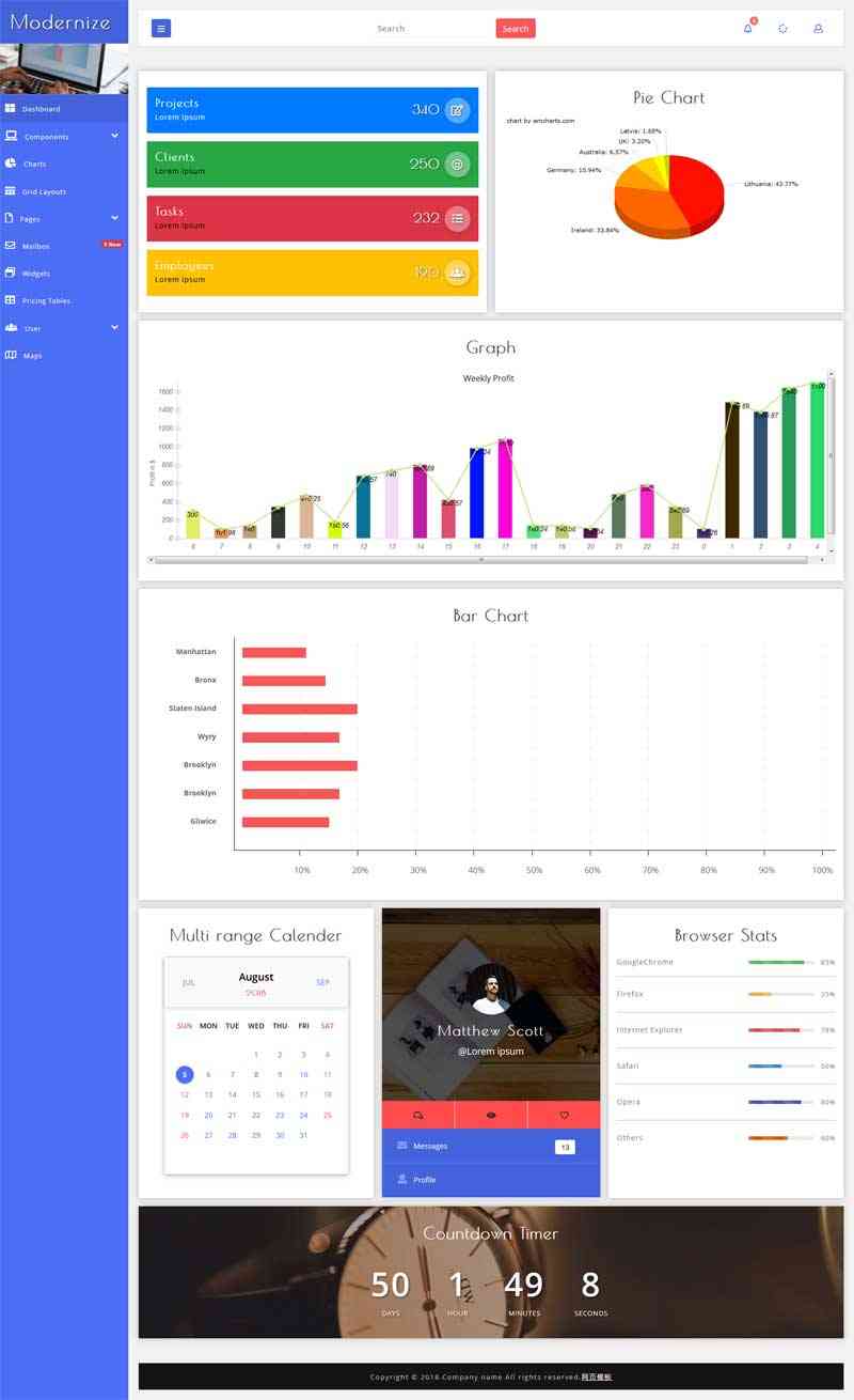 扁平化的图表数据统计管理页面,响应式的图表统计界面ui模板下载。...