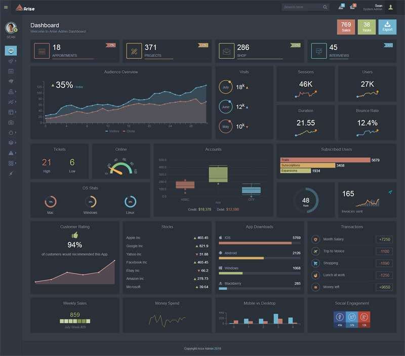 一个基于Bootstrap Framework的功能强大且轻量级的订单销售统计,业绩销售额管理页面模板。它拥有大量可重用的UI组件,一个完全响应式的管理控制面板,可在所有主要的Web浏览器和设备。...