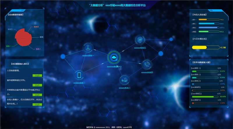 漂亮的大屏显示系统统计管理界面模板, 通用的大数据展示主页模板html5下载。...