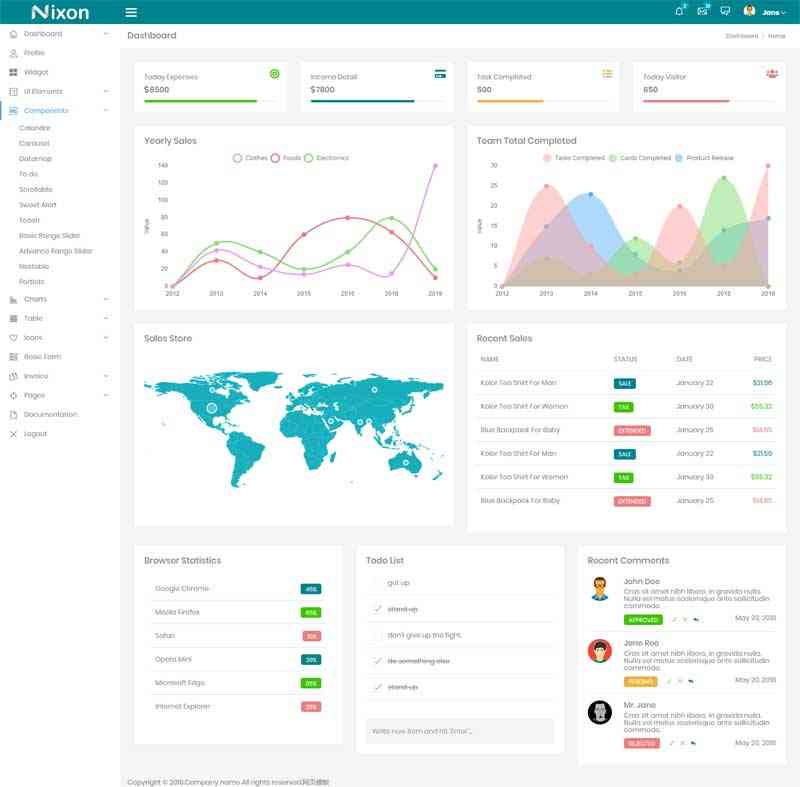 一款基于bootstrap响应式多用途的电子商务产品销售统计,商城网站订单收入统计管理后台ui框架模板下载。...