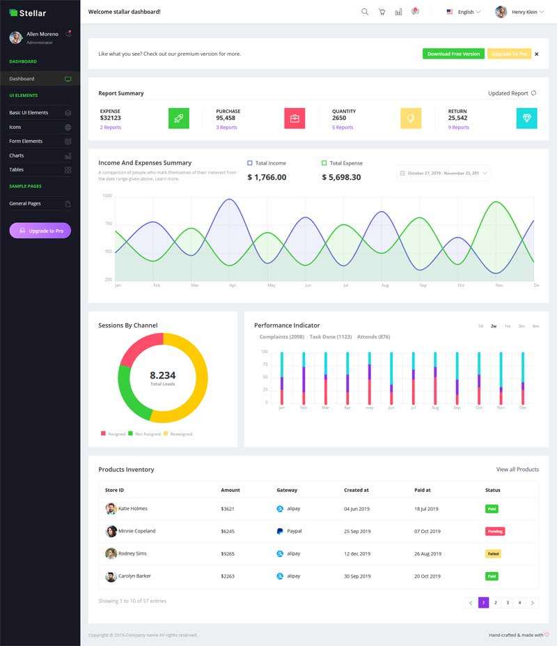 一款漂亮的静态后台模板,使用Bootstrap4框架,HTML5, CSS3构建。这套后台模板集成可重用的UI组件和最新的jQuery插件。这套后台UI界面设计简约直观,可以用于所有类型的web应用程序、自定义管理系统、项目管理系统、数据分析系统、后端应用程序或CRM系统等。...