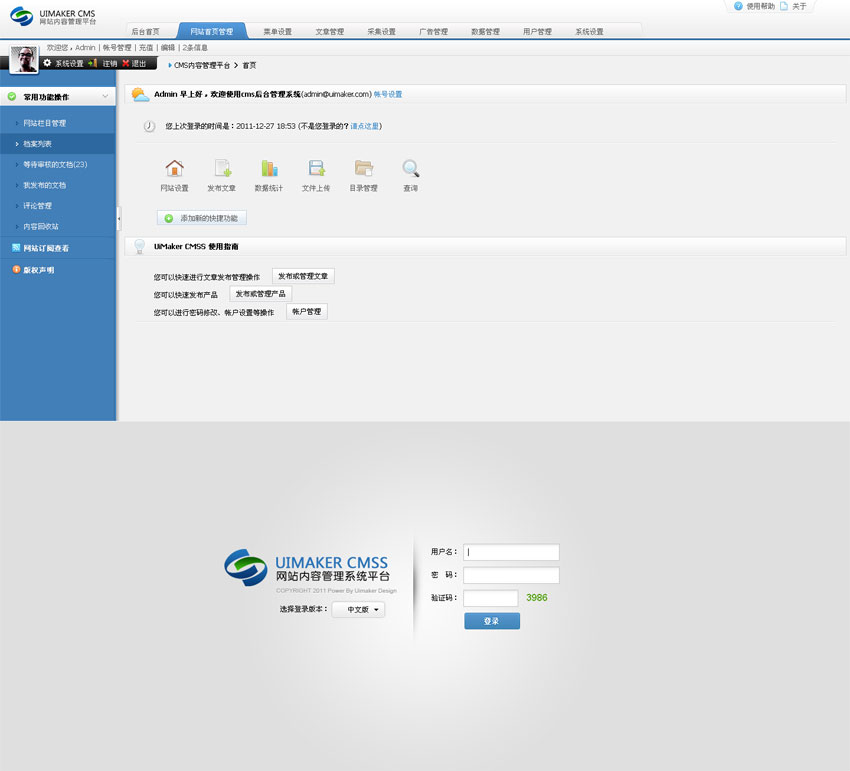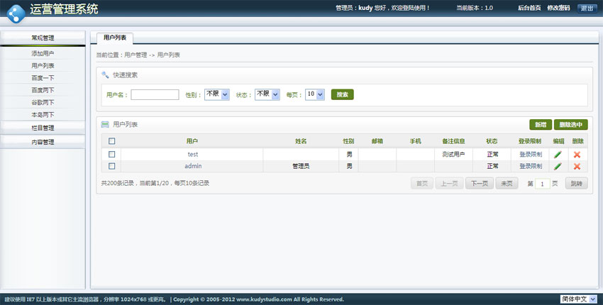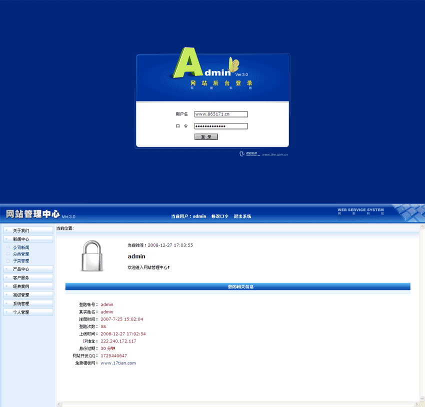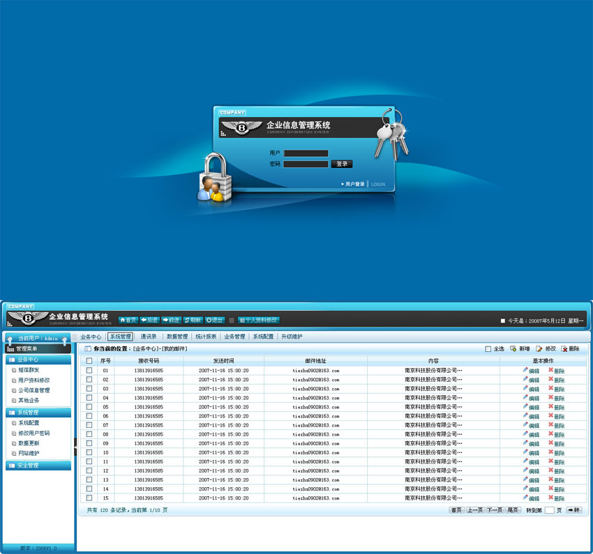 操作简单的蓝色设计后台模板,蓝色风格,含登陆页面及后台操作页面,设计上体现了对用户操作的考虑,是您开发一般后台的首...