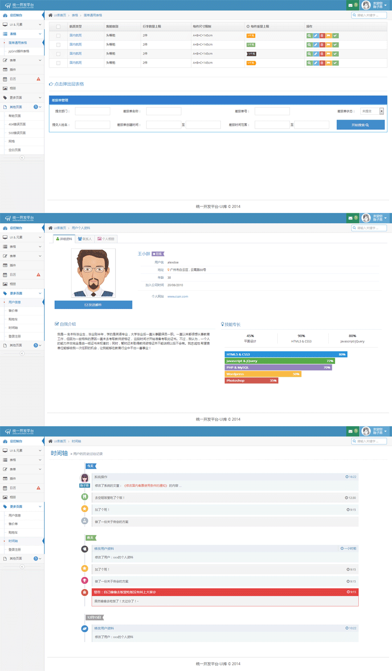 蓝色的航空公司后台模板,南航后台cms管理模板、UI 元素、表格、表单、插件、日历、相册、更多页面、其他页面等后台管理页面模板html...