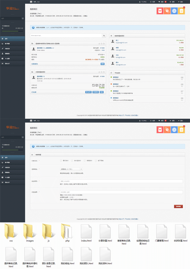财富投资管理后台模板、分享财富、接受帮助记录、经理奖钱包记录、门票管理、收获财富、提供帮助记录、提供帮助所得利息、团队信息记录、我的钱包、我的团队、我的资料等后台管理页面模板html下载。...