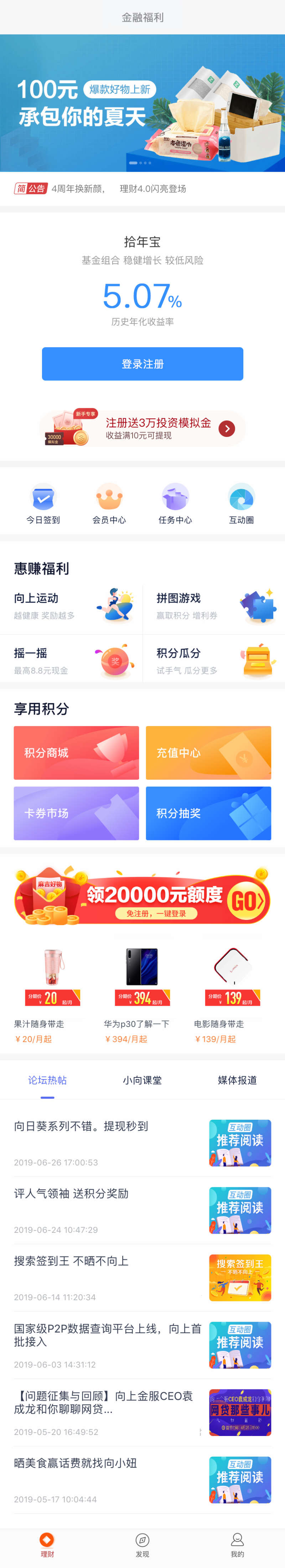 通用的手机app金融福利,理财积分兑换主页模板。今日签到、会员中心、任务中心、消费闪付、惠赚福利、享用积分等。...