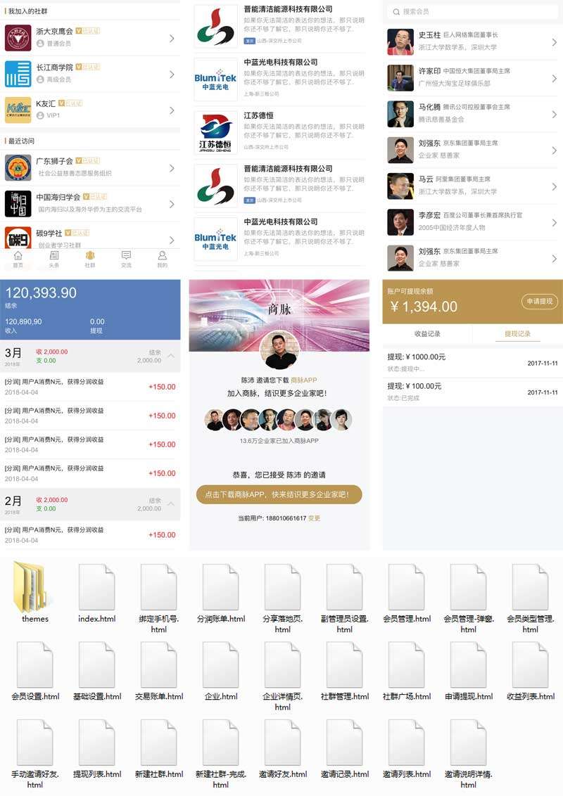 商脉APP原创APP页面HTML5源文件,原创!企业信息 企业互知(原创)内嵌h5包含个人中心所有的页面 首页社群,商品企业,所有相关的UI交互,以及登录注册页面。以及JS交互,相关页面...