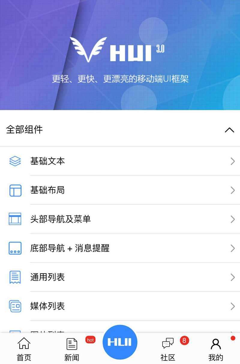 国人自己的UI开源框架,虽然也叫hui,但是和做后台的那个hui不是一家,像MUI但不同于MUI只能用于H5+、app等环境,这套UI完全可以作为WEB移动端项目,比如微信公众号开发,我自己有个项目也在使用,还是很不错的,丰富的UI及组件完全满足我们开发中的各种需求...
