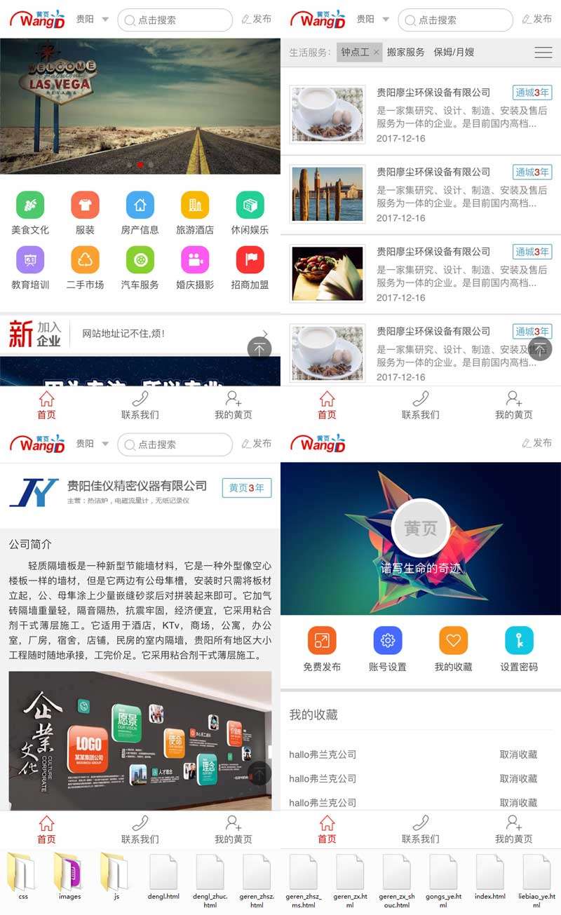 企业商家信息分类网wap手机资讯网站模板,手机黄页信息分类网模板。主要页面有:个人中心、信息列表页、商家详情、注册、登录等手机页面模板。...