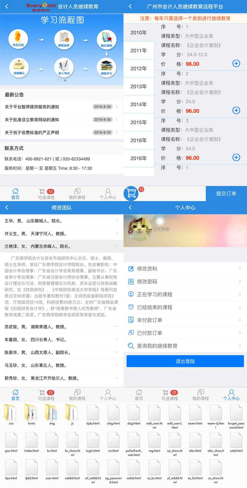 会计人员继续教育视频购买手机模板,视频播放,视频学习,订单结算,个人中心,新闻等手机页面html模板下载...