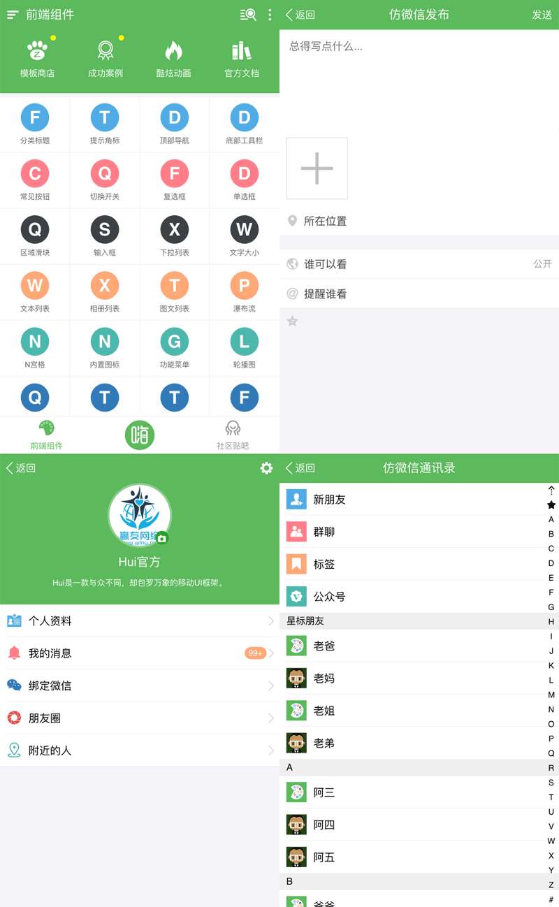 HUI前端框架手机app模板、通用的hui框架手机页面模板下载。仿微信发布、仿微信通讯录、仿QQ会话列表、常见个人中心、常见登录注册、漂亮的资讯首页、常见购物车、调查问卷、仿应用宝首页、仿美团首页、仿大众点评发现页、仿大众团购页、设置页面等手机页面模...