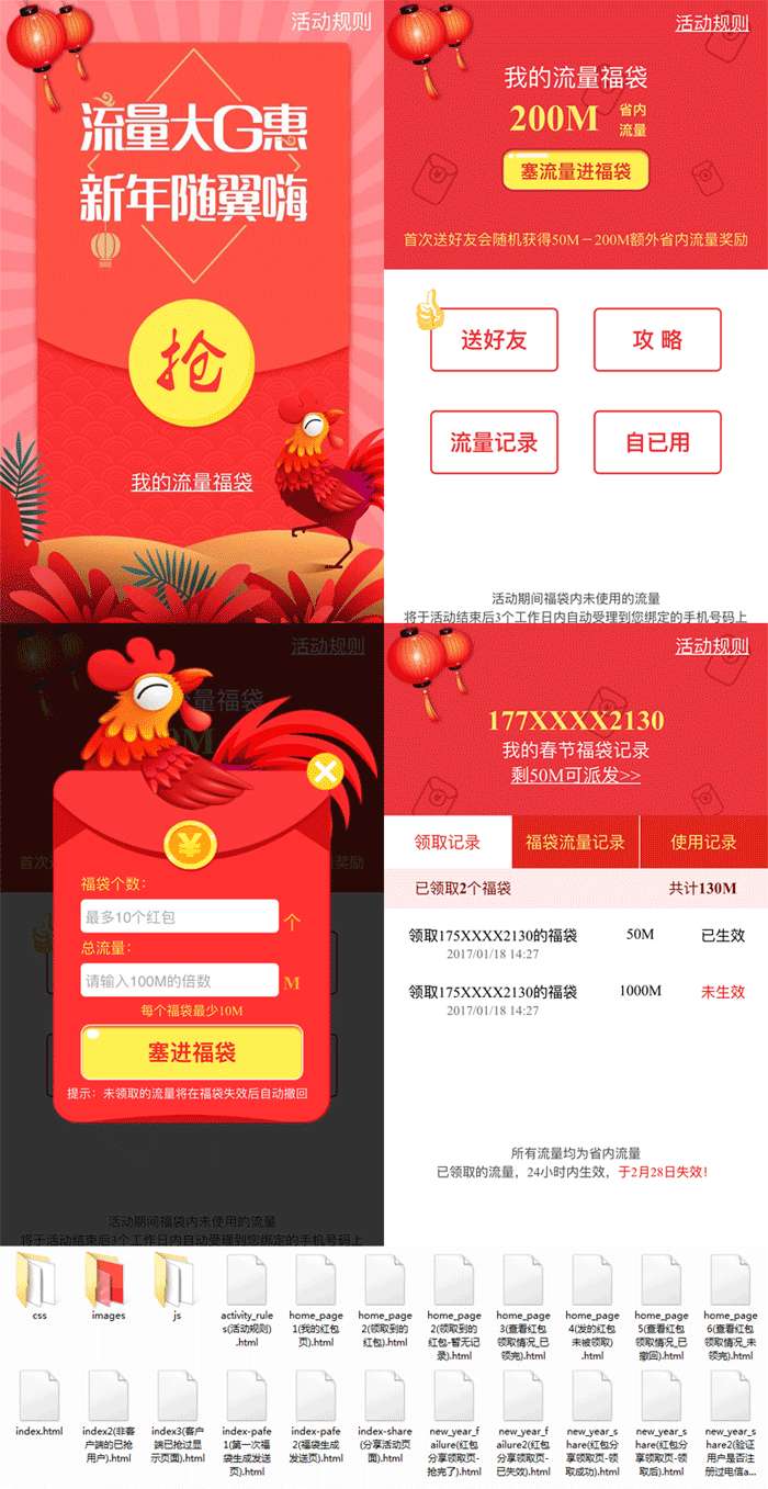 新年流量红包活动页面模板,手机抢流量红包专题模板html源码。...