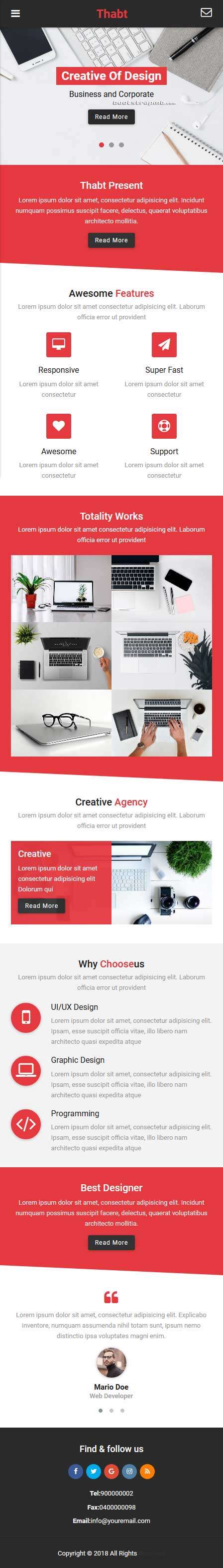 红色的移动手机端企业站模板。通用型的手机App和微网站前端响应式模板。支持创意家居、商店、博客、新闻、作品和许多其他页面。这个模板干净的设计,干净的代码很容易定制。...